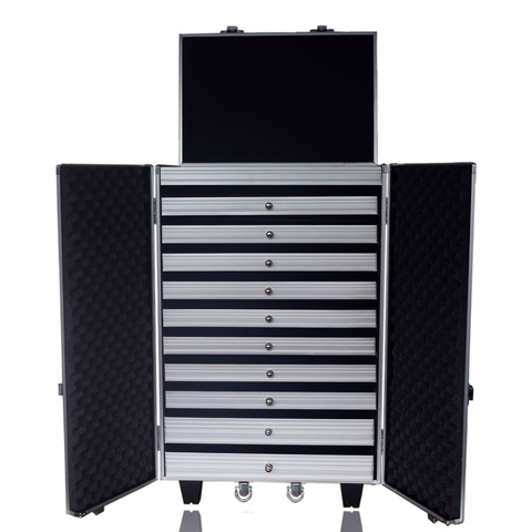 Aluminium Trolley Case Voor Verkoper Met Lades Aluminium Sieraden Cae Met Trolley