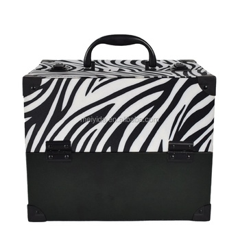 Вместительная коробка для хранения косметики, профессиональный портативный жесткий чехол для макияжа с узором зебры, алюминиевый чехол для макияжа
